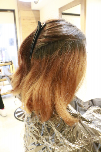 前回カラーから3か月後。退色して毛先が明るくなってます!!