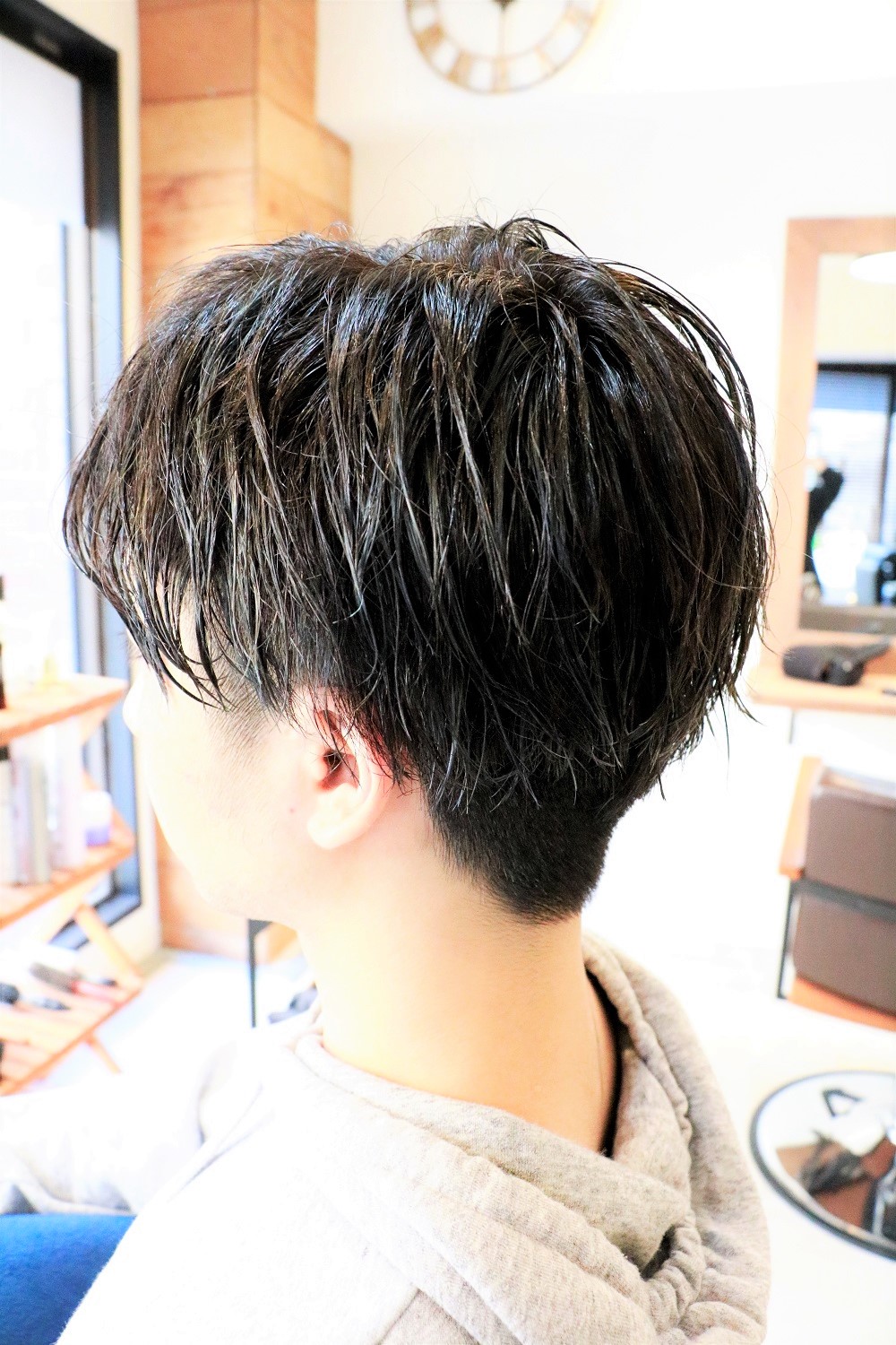 スタイリング剤はウェット系を付ける事で、野暮ったい感じが出ないのでオススメです!!